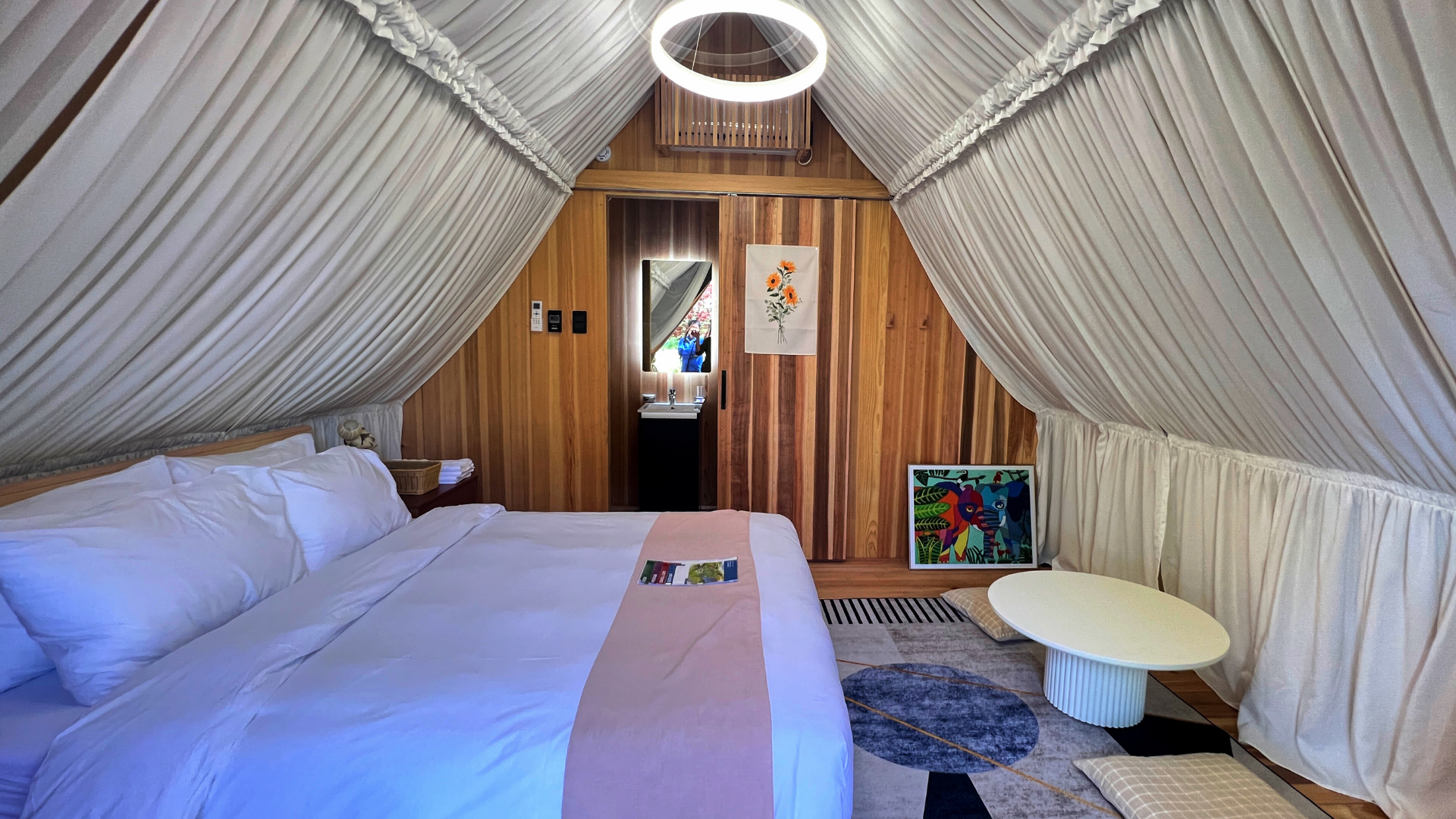 要說《2023順天灣國際園藝博覽會》讓卡卡編最想要也最遺憾的,應該就屬這個花園住宿了吧!誰能想到竟然可以在花園裡面住一晚!而且除了住宿外,還有廚師安排早餐跟晚餐,不定時還會有體驗項目可以報名,或是早上可以早起,赤腳踩在草皮上,享受泥土與晨露帶來的清澈感。